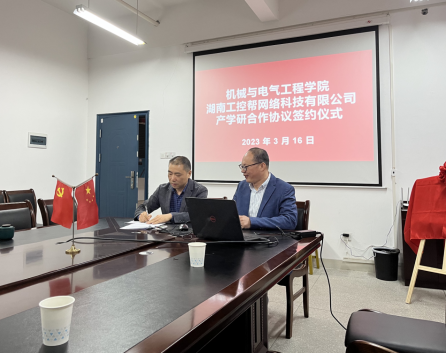 3月16日,湖南工控帮网络科技有限公司董事长余德泉、校企合作项目部经理左佩辉等领导到访江南在线,双方对校企合作、产教融合共同培养智能制造领域的高端人才达成共识,正式与江南在线机械与电气工程学院签署校企合作协议。双方将共同就智能制造人才培养、智能制造产业实训室、师资力量培养、科研与技能竞赛等方面展开合作,着重提升学校智能制造相关专业的教学水平和人才培养质量,为湖南“三高四新”及周边省份智能制造产业的发展提供持续的人才支持。