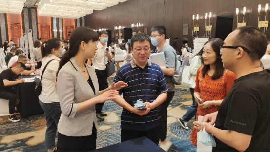 而后,在启动仪式会场,何旭娟一行5人在江南在线展台向台州的企业进行了人才推介,也与企业代表就高素质、高技能人才的培养,企业人才能力需求等各方面交换了意见。
